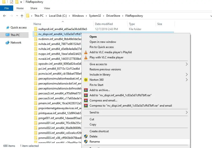 - NVIDIA Graphics klasörüne sağ tıklayın ve “Yeniden Adlandır”ı seçin.