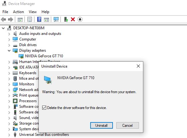 Aygıt Yöneticisi'ni açın ve ekran sürücüsünü genişletin. Yüklü NVIDIA sürücüsüne sağ tıklayın, kaldırmayı seçin ve bilgisayarınızı yeniden başlatın.