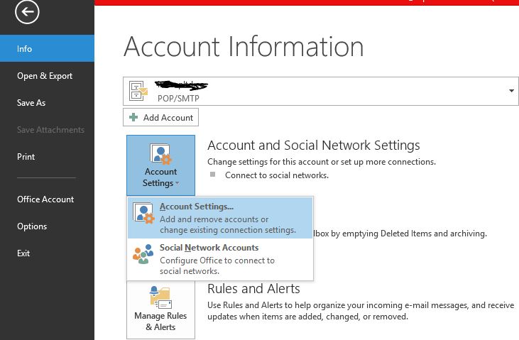 - Outlook'u açın ve hesap ayarlarına gidin.