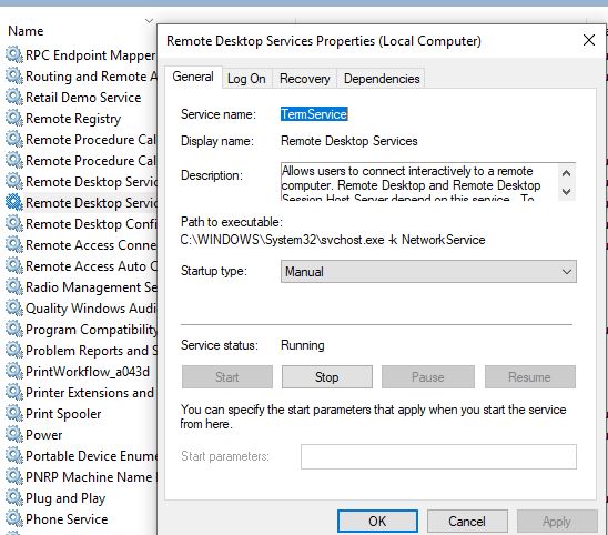 Herhangi bir sebepten dolayı uzak masaüstü hizmeti başlamamış veya durmamışsa, uzak bağlantıda sorunlarla karşılaşabilirsiniz. Aşağıdaki adımları izleyerek hizmetin çalışır durumda olup olmadığını kontrol edin ve emin olun.