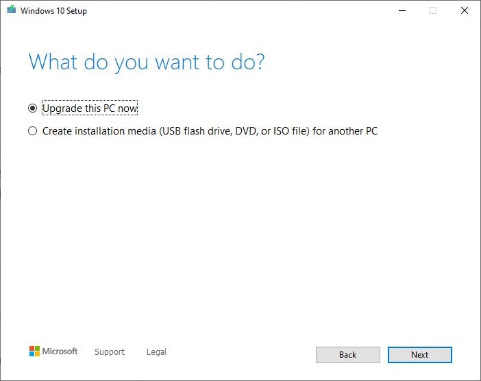- Medya oluşturma aracını kullanarak Windows 10'u yükseltmek için İleri'ye tıklayın ve ekrandaki talimatları izleyin.