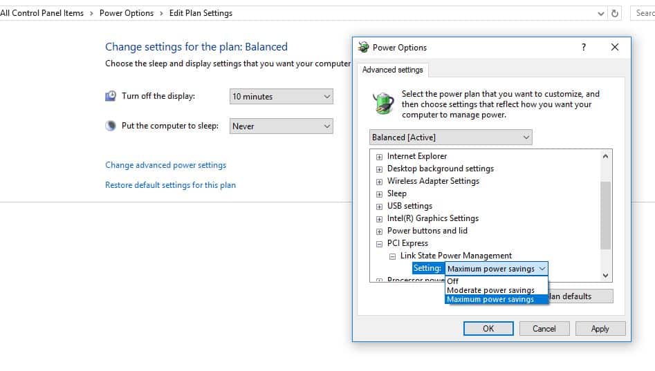 Güç ayarlarını yüksek performansa bırakmak istemiyorsanız, ancak PCI Express için güç tasarrufunu devre dışı bırakmak istiyorsanız, bu talimatları izleyebilirsiniz.