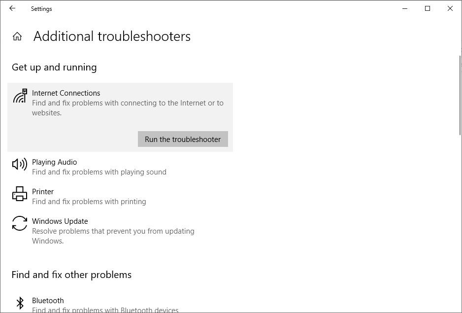 Bu sorun giderici, bilgisayarlarda İnternet bağlantılarıyla ortak sorunları bulan ve çözen otomatik bir Windows 10 dahili araçtır. Bu aracı çalıştırmak için bu adımları gerçekleştirin ve bunun yardımcı olup olmadığını kontrol edin.
