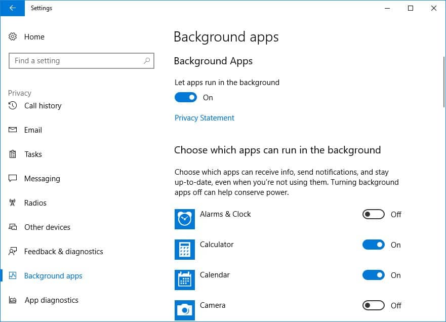 - Gizlilik -> Arka Plan Uygulamaları'na tıklayın.