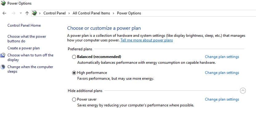 - Burada radyo düğmesini seçinYüksek performans,Bir güç planını seçin veya özelleştirin.