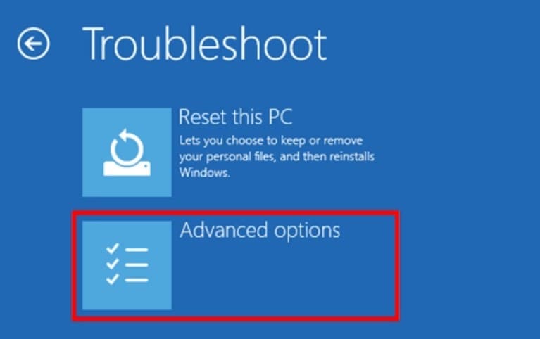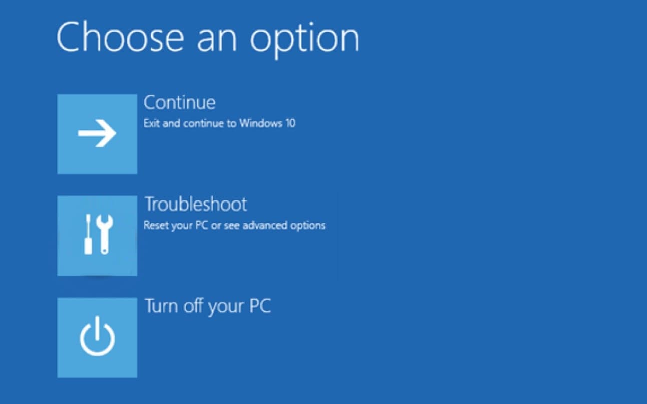 - PC yeniden başladığındaBir seçenek ekranı seçin, seçmeSorun gidermek