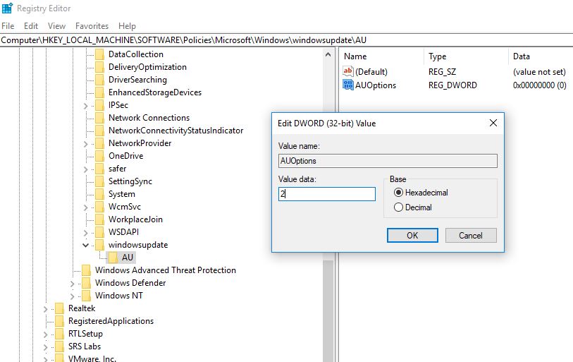 HKEY_LOCAL_MACHINESOFTWAREPoliciesMicrosoftWindowsWindowsUpdateAU