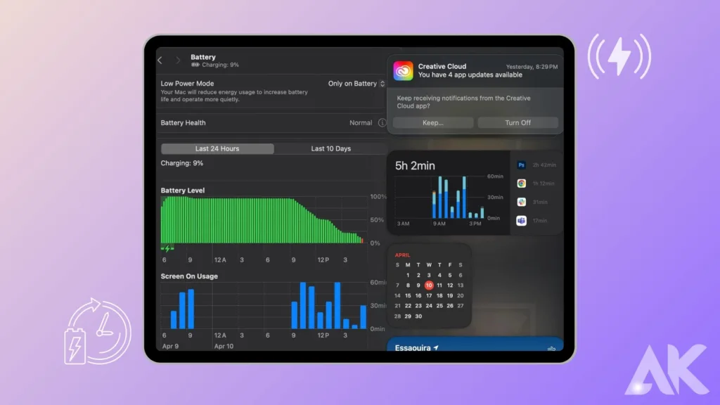 Ayrıca, M2 iPad Air 2024, ücretler arasındaki süreyi uzatmak ve pil ömrünü iyileştirmek için en iyi güç kullanan özelliklerle kullanıcı konforunu ilk sıraya koyar. M2 iPad Air 2024, pili hızı etkilemeden daha uzun süre dayanmasını sağlayan akıllı güç tasarrufu özelliklerine sahiptir. Bu, şarj etmek zorunda kalmadan daha uzun süre kullanabileceğiniz anlamına gelir. Şafaktan alacakaranlıktan M2 iPad Air 2024, her zaman uzun süreli pil ömrüne ve hızlı şarjına güvenebileceğinizi bilerek size her anın tadını çıkarma özgürlüğü verir.