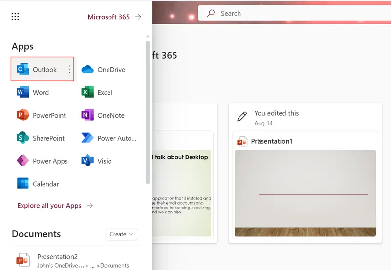 - Giriş yapınOfis 365Hesap ve SeçinGörünümMevcut uygulamalardan.