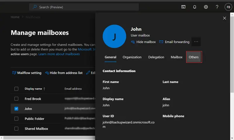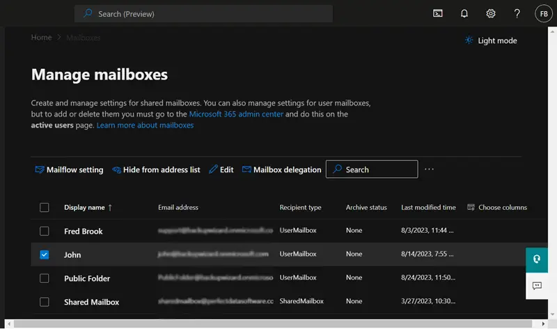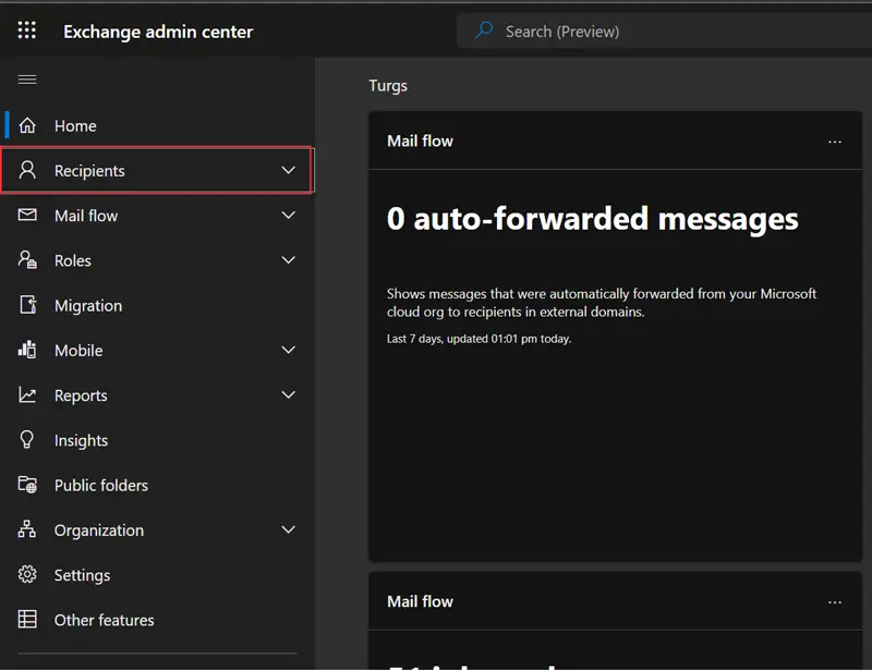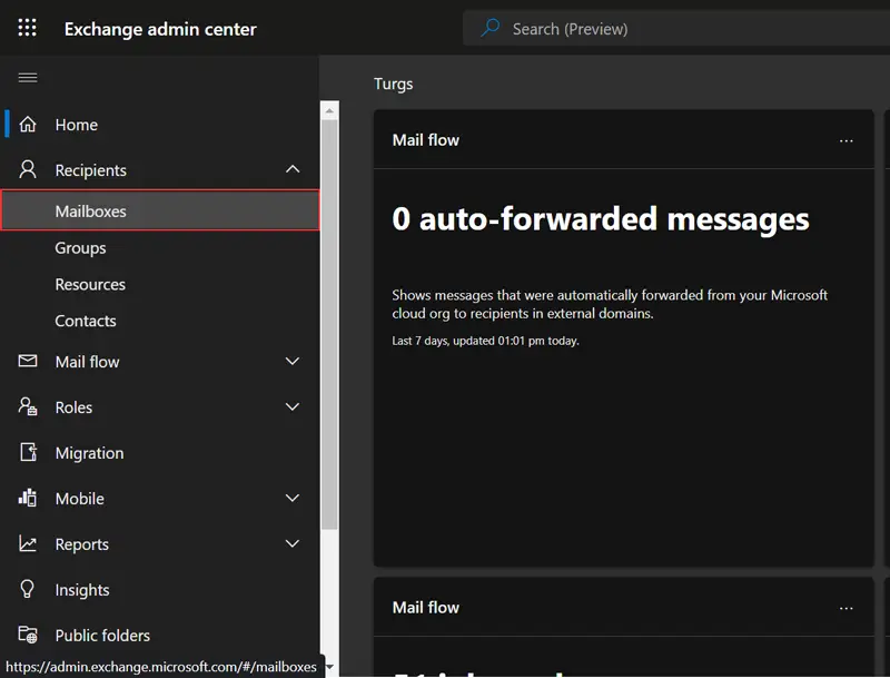 - Exchange Yönetici Merkezine gidin ve seçinAlıcılar >> posta kutuları >> Daha fazla seçenek • • •devam etmek için.
