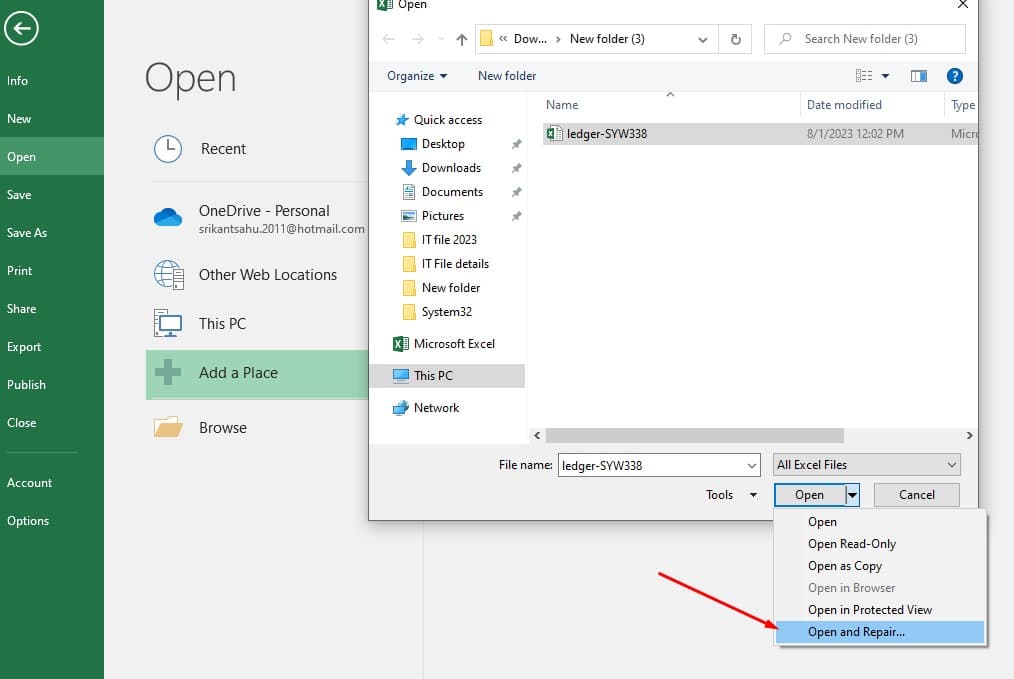 Microsoft Office paketi gibi bazı uygulamalar yerleşik onarım işlevleri sunar. Örneğin, Microsoft Excel, hasarlı Excel sayfalarını onarmaya çalışabilir.