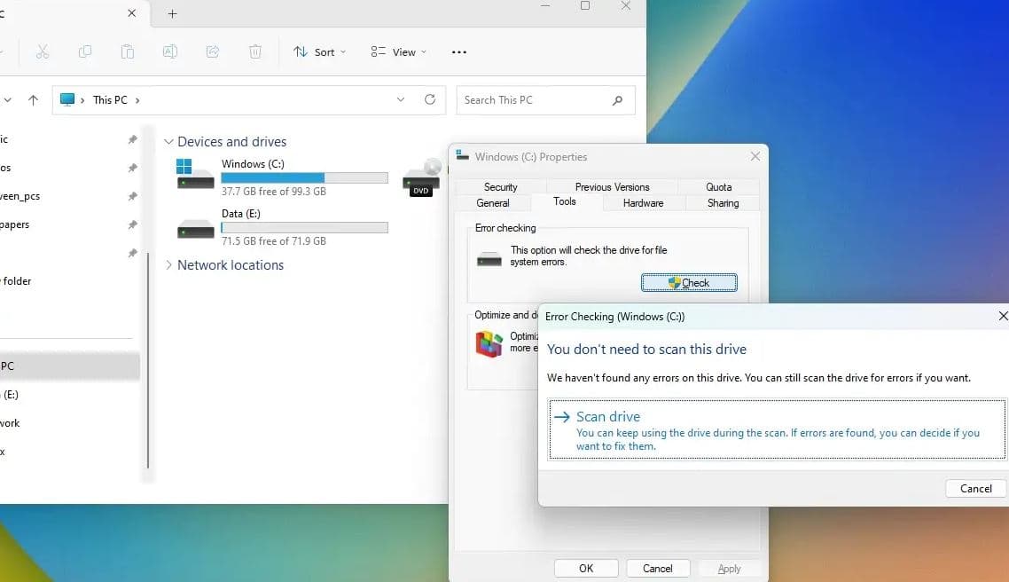 Chkdsk'i Dosya Gezgini'nden çalıştırın