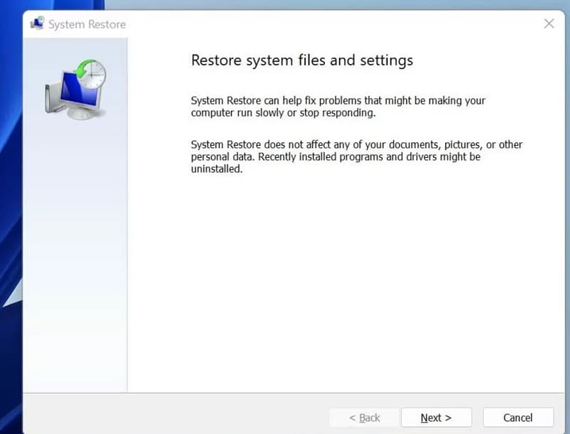 Yukarıdaki araçlar bilgisayarınızdaki bozuk dosyaları onarmayı başaramazsa, aşağıdaki işlemleri gerçekleştirebilirsiniz:sistem geri yüklemeBu, bilgisayarınızın durumunu, doğru çalıştığı önceki bir noktaya geri döndürür. Sisteminizi bilinen iyi bir duruma geri yükleyerek, dosya bozulmasına veya diğer sorunlara neden olabilecek son değişiklikleri etkili bir şekilde geri alabilirsiniz.