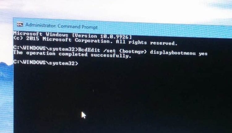 BCDDEDIT /SET {BOOTMGR} DisplayBootMenu Evet