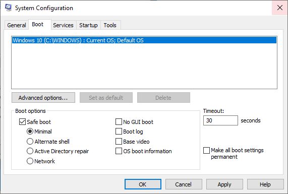 - Güvenli modda önyükleme yaparken çok temel yapılandırma yüklenir.