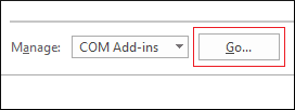 3. COM:Eklentiler'i seçin ve Git'e basın.