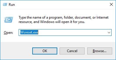 - burada tipWsreset.exeve soruna neden olan herhangi bir geçici önbellek olup olmadığını temizlemek için tamam.