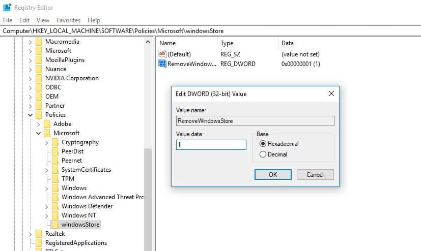 - HKEY_LOCAL_MACHINESOFTWAREPOLOCIESMICROSOFTWINDOWSSTORE