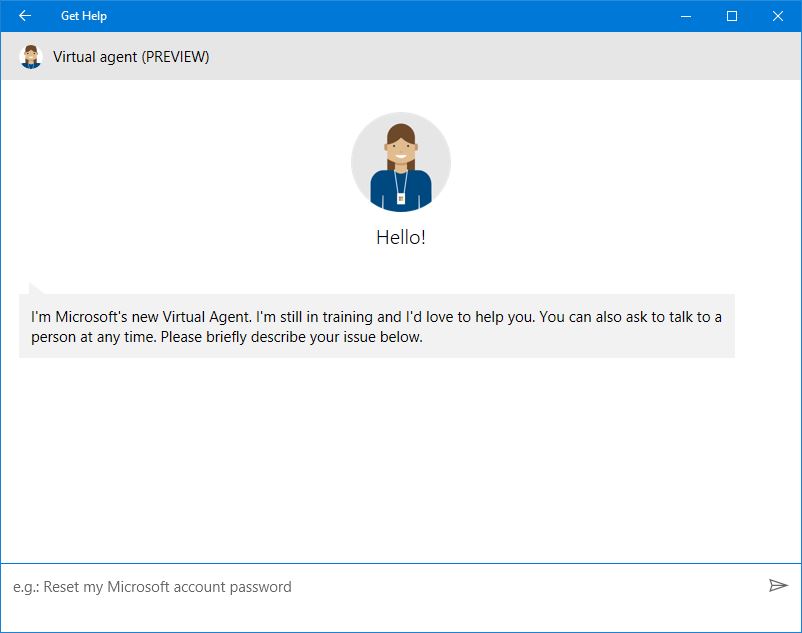 Bu kadar ileri geldiyseniz ve hala cevaplanmamış sorularınız varsa, en iyi seçeneğiniz Microsoft'un Windows 10 kullanıcıları için resmi yardım ve destek kaynağına danışmaktır. Sanal temsilci, tamamen otomatik bir çevrimiçi sohbet desteği gibidir. Diğer tarafta biriyle konuşuyormuşsunuz gibi hissedeceksiniz, ama tam anlamıyla sadece bir bot. Bir soru olarak ifade ettiğiniz sürece istediğiniz konuda yardım isteyebilirsiniz ve sanal temsilci ilgili Microsoft makaleleriyle yanıt verecektir.