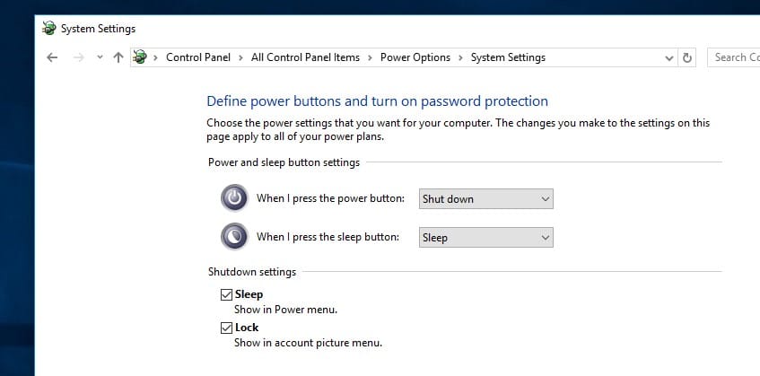- TıklamakGüç düğmelerinin ne yaptığını seçin.