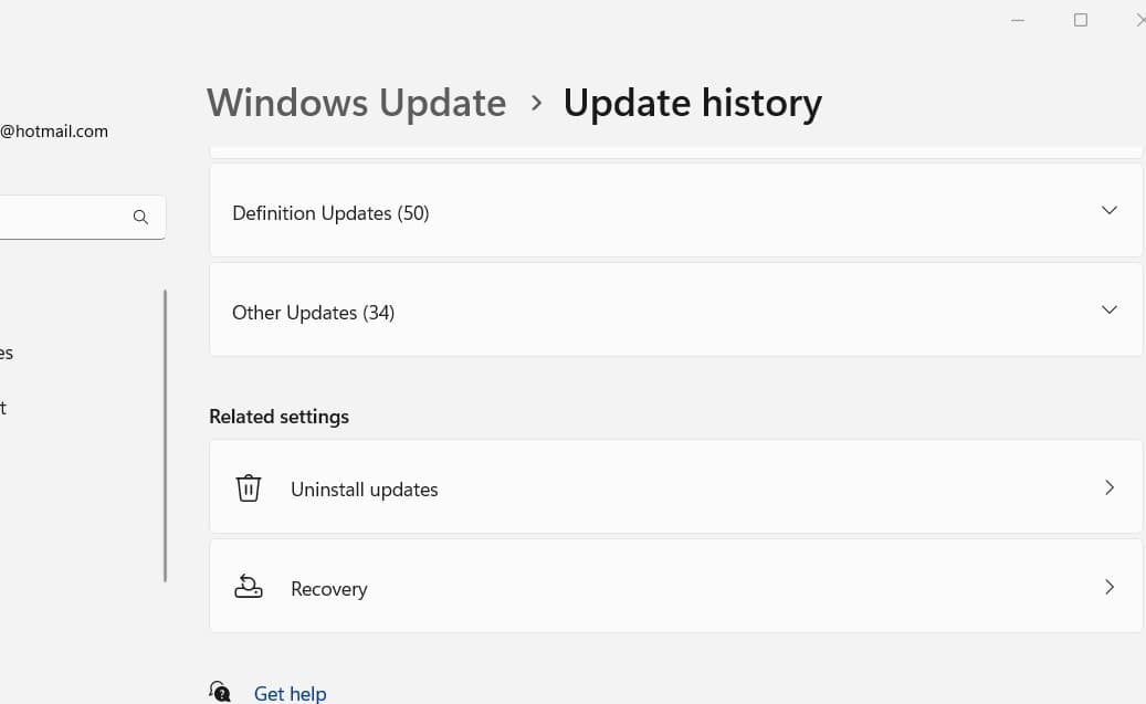 - Windows güncellemesinde gezinin, ardından geçmişi güncelleyin ve SeçinGüncellemeleri kaldırsayfanın alt kısmında