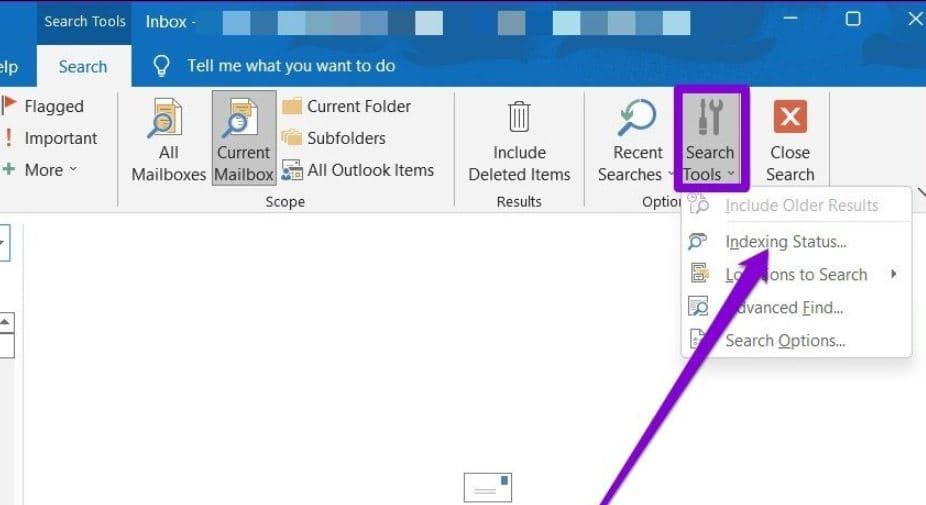 - Arama Araçları menüsüne tıklayın ve ardından Dizin Durumunu seçin,