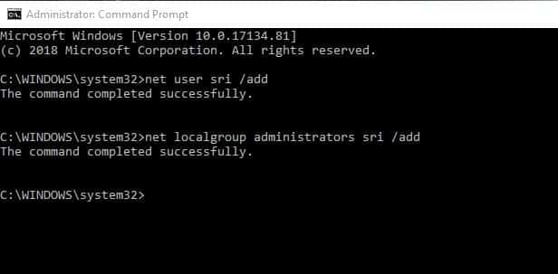 - Daha sonra komutu yazınnet yerel grup yöneticileri admin /addYeni oluşturulan kullanıcı hesabını Yönetici grubuna eklemek için.