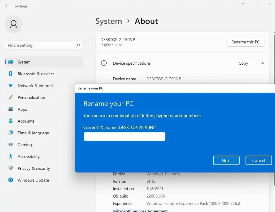 - Ve son olarak, bilgisayar için yeni bir ad girin, Windows 11'e yeni adı uygulamak için PC'nizi yeniden başlatın.
