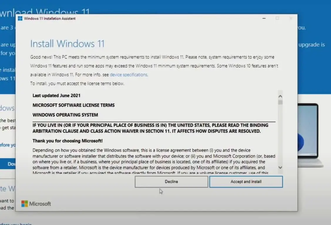- Sisteminiz gereksinimleri karşılayacak şekilde doğrulandıktan sonra, Windows 11 24H2 güncellemesini "kabul etme ve yükleme" seçeneği sunulacak. Kuruluma devam etmek için bu seçeneğe tıklayın.