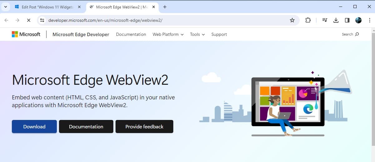 Widget tablosunda, widget içeriğini görüntülemek için Microsoft Edge WebView2 çalışma zamanı kullanır