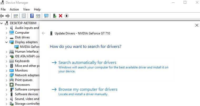 - “Güncellenmiş sürücü yazılımı için otomatik olarak arama” seçeneğini seçin ve istemleri izleyin.