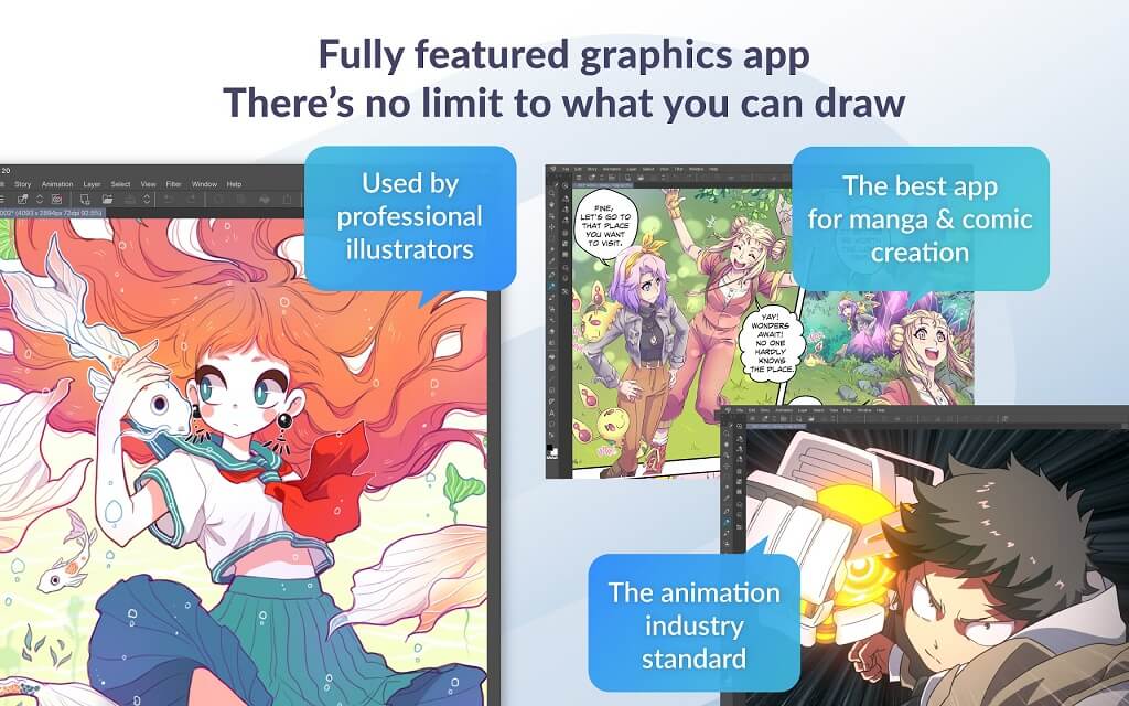 Clip Studio Paint, sanat yaratırken size avantaj sağlamak için 40.000'den fazla fırçaya ve yüzlerce özelliğe sahip profesyonellere yakın bir sanat uygulamasıdır. Uygulama ayrıca raster ve vektör grafiklerini ve çok çeşitli 3D formatları destekler.