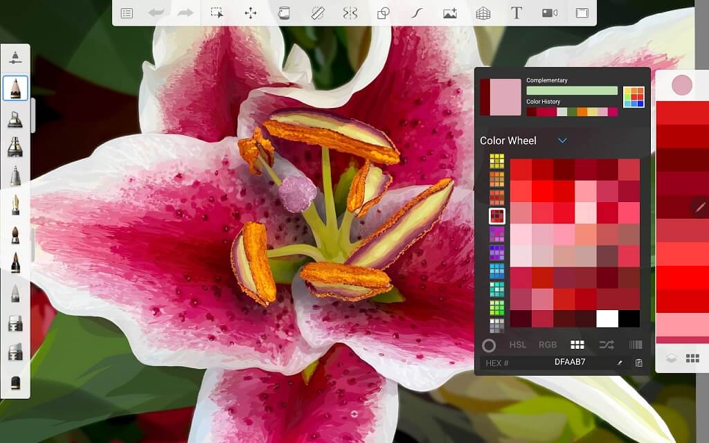 Artrage, gerçek boyayı (suluboya dahil) taklit eden dokular ve boya fırçaları ile gerçekçi bir resim deneyimi sunan en iyi Android çizim uygulamalarından biridir. Bu uygulama en iyi Samsung ve deneyimin daha büyük bir ekranla güçlendirildiği diğer Android tabletlerde kullanılır - özellikle bir kalem kullanıyorsanız.