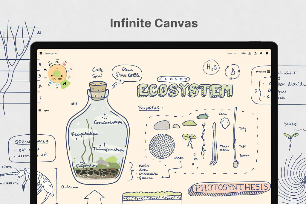 Konseptler, sonsuz bir tuvali olduğu için benzersiz bir çizim deneyimi sunar. Bu, uzaydan çıkma konusunda endişelenmeden deney yapabileceğiniz, fikir üretebileceğiniz veya sadece doodle olabileceğiniz anlamına gelir. Ayrıca inanılmaz derecede kullanıcı dostudur ve birçok önceden ayarlanmış fırça, alet ve efekt sunar.
