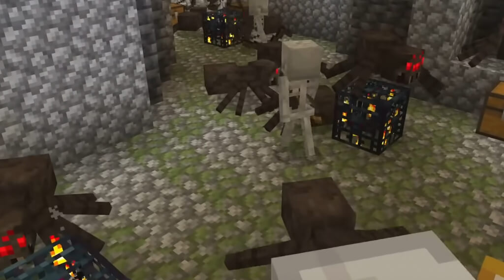 İyi bir mafya öğütücü kurulumunu seviyorsanız, bu sizin için mükemmel bir tohumdur. Yumurtlama noktasının hemen altında, birbirine bağlı üç örümcek yumurtası ve bir iskelet yumurtçudan oluşan dörtlü bir mafya yumurtlayıcısı bulacaksınız.