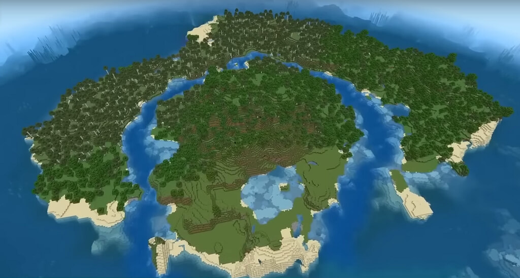 Yeni bir ada kalesi yapısı için ilham arıyorsanız, bu tohum size dışarıdaki en eşsiz adalardan birini gösterecektir. Aslında, iki ada-hilal şeklinde bir ada ile çevrili daha küçük bir dairesel ada.
