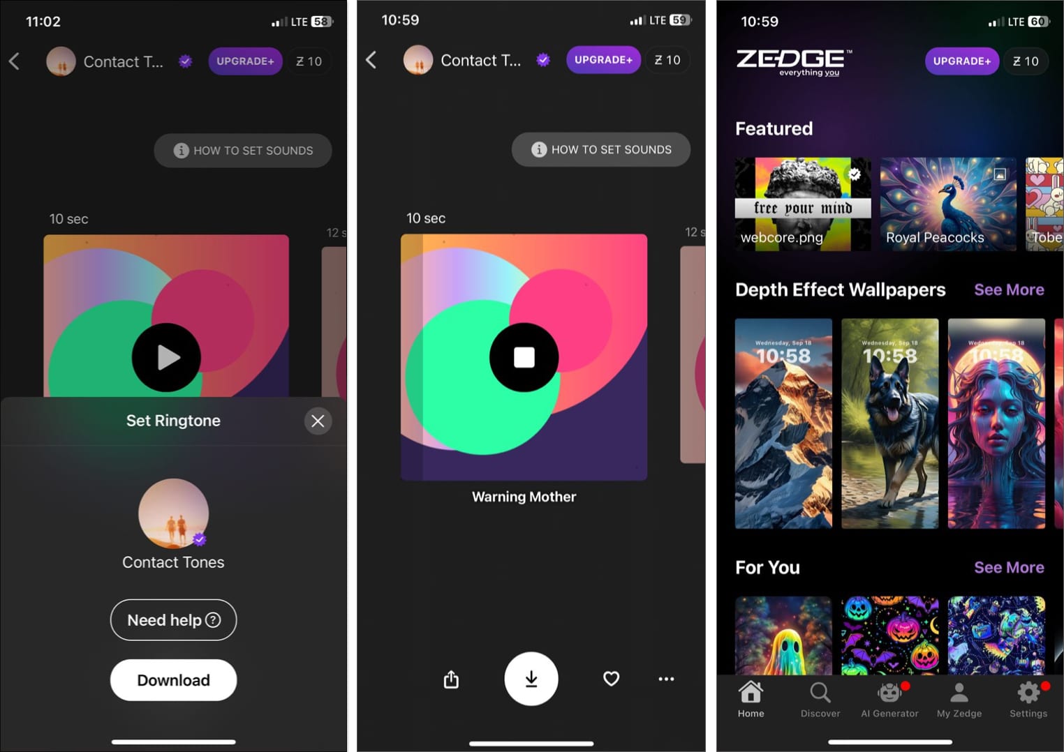 Zedge, bir duvar kağıdı ve zil sesi uygulaması olarak ikiye katlanan cihaz kişiselleştirmesi için popüler bir uygulamadır. Çoğu ücretsiz olarak mevcut olan zil sesleri için çok sayıda harika ses sunar.