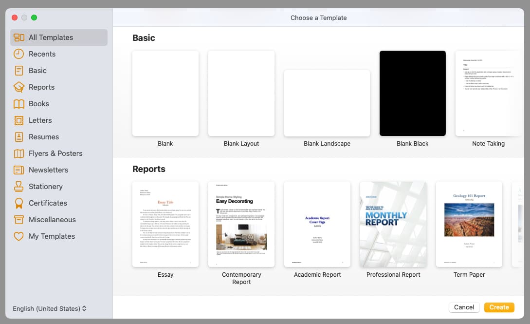 Microsoft Word'e benzer şekilde, makaleler, raporlar ve özgeçmişler gibi belgelerin yanı sıra broşürler, bültenler ve broşürler sayfalarda oluşturabilirsiniz.