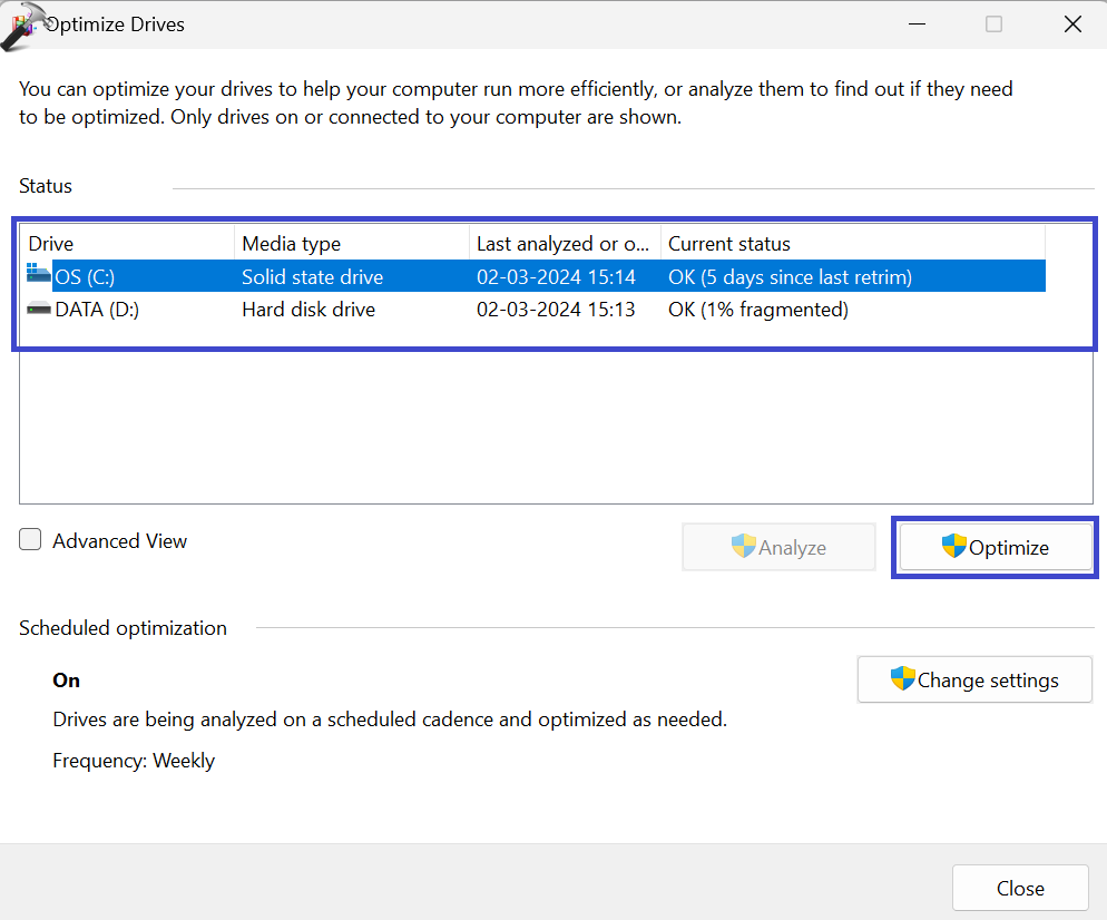 2.. Bitirmek istediğiniz sürücüyü seçin ve “Optimize etmek" seçenek.