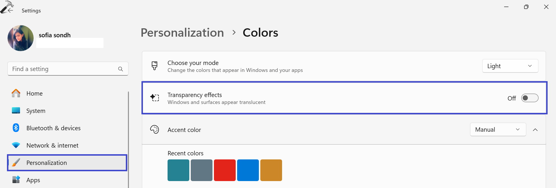 1.Ayarlar => Kişiselleştirme => Renkler ”.