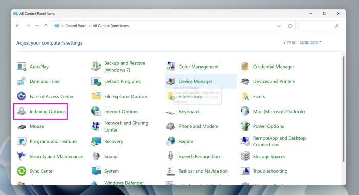 control /name Microsoft.IndexingOptions2.BasınAnahtar girinaçmak içinDizinleme SeçenekleriPencere ve ardından tıklayınGelişmişiçinde.
