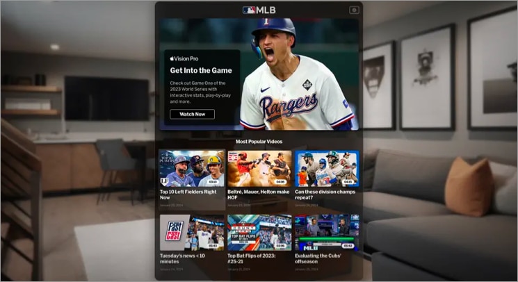 En sevdiğiniz beyzbol oyunu için ön sıra koltuk almadınız mı? Endişelenmeyin, MLB uygulamasında olduğu gibi, HD Visuals'daki Apple Vision Pro'nuzda gerçekçi bir oyun deneyiminin tadını çıkarabilirsiniz. Sürükleyici bir 3D ortamla, daha önce hiç olmadığı gibi oyunların etkileşim kurabilir ve tadını çıkarabilirsiniz.