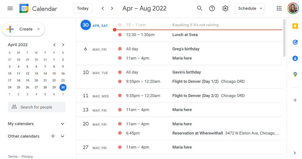 - Plan görünümü. Bazı insanlar buna “gündem görüşü” diyor çünkü takviminizdeki gelecek etkinliklerin bir listesini gösteriyor.