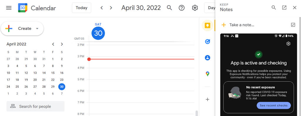 - Yan panelden atlayın:BasmakAltlık+Ctrl+dönemveyaAltlık+Ctrl+virgül. Bu, imlecinizin odağını Google Keep, Görevler, Kişiler ve Google Haritalar gibi seçenekleri takip edebileceğiniz yan panele değiştirecektir. BasmakGirmekSeçilen uygulamayı yan panelde açmak için. Mac kullanıcıları kullanabilirEmretmek+Seçenek+dönemveyaEmretmek+Seçenek+virgül. Ve bir Chromebook'unuz varsa, deneyinAltlık+Vardiya+dönemveyaAltlık+Vardiya+virgül. Yan panel, Google Drive'da zaten kullanabileceğiniz yan panelle neredeyse aynıdır.