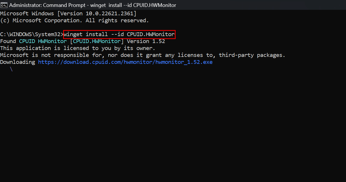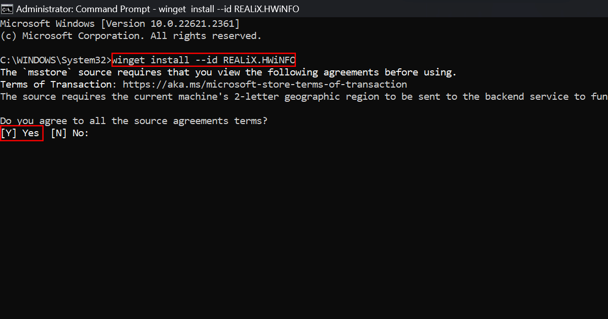 - Yüklemek için aşağıdaki komutu yazınHwinfoUygulama ve basınGirmek: