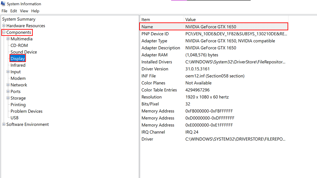 Sistem bilgilerinden grafik kartı detayları nasıl belirlenir