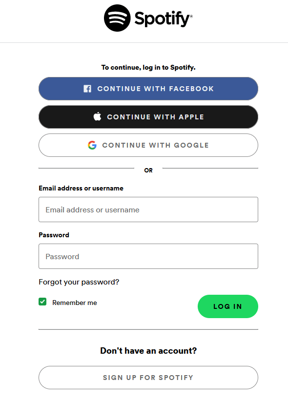 - Spotify'ın web sitesine yönlendirileceksiniz. Spotify kimlik bilgilerinizle giriş yapın.