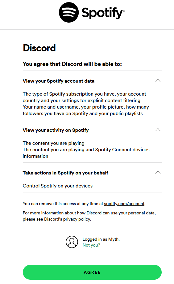 - Spotify hesabınıza erişme konusunda uyumsuzluk yetkilendirmeyi kabul edin.