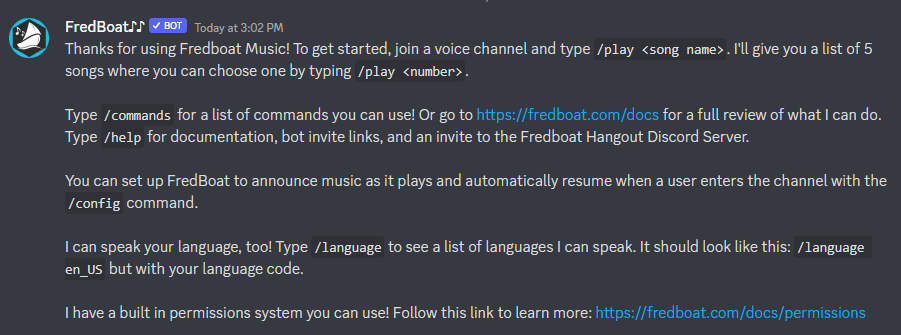 Bunlar en yaygın komutlardan sadece birkaçıdır. Daha fazlasını görmek için,Fredboats komutları sayfasıResmi web sitesinde.