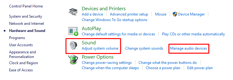 - AltındaSesBölüm bul ve seçSes Cihazlarını Yönetin.